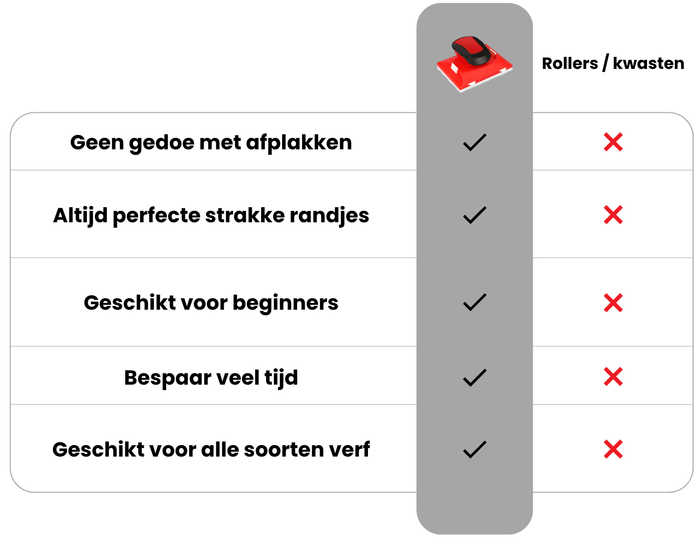 Verlies geen tijd meer: Geen gedoe met schilderstape en geen tijdverlies. De Verfrander zorgt voor snelle, nauwkeurige schilderranden, zodat jij minder tijd kwijt bent en sneller klaar bent met je project.